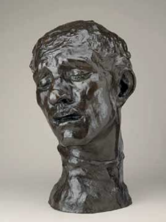 Auguste Rodin’s studies for The Burghers of Calais (1884–1889), particularly the individual heads, function as “anti-monuments”. The Monumental Head of Pierre de Wissant shows a figure absorbed in his own thoughts. Rodin rejected heroic convention; instead of the confident, noble faces typical of 19th-century civic monuments, he portrayed the men as “troubled, isolated individuals in anguish,” giving them slumping postures and emotionally tortured features. The “emotionally tortured face” and “anguished expression” of de Wissant make the figure’s inner suffering and "extreme distress" visible as he faces his own sacrifice.⁶